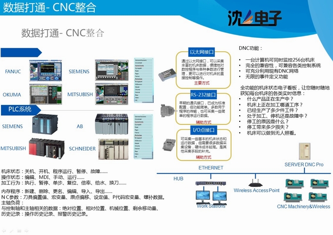 机床数据采集通过机床联网对车间数控机床进行自动监测与管理。通过以太网络连接,使用一台电脑即可对所有的数控机床进行网络化集中管理,简单易用,稳定可靠。有效的提高机床效率,降低管理成本,是车间管理者和企业领导的强大数字化助手。