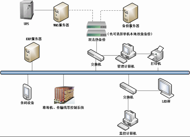 服务器:在服务器上运行管理系统数据库软件,存储所有相关的库位、物料、用户、人员等信息。