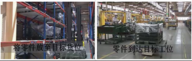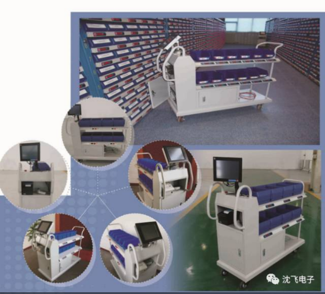 数字化拣选配送车:实现快速拣货同时,也完成了生产线各工序物料需求的配套拣选,同时可将配送物料送到各工位要求摆放的位置。