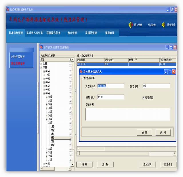 系统主要用于存放中大件物料。根据工艺(订单)数据、生产作业计划、采用条码及数据采集技术和电子信息技术进行计算机分析处理,可以实现实时自动更新物流数据,让操作员按照可视信息及控制流程工作,保证库房物料的正确入库(配套),实现叉车存取指示、条码分拣,物流与信息同步。