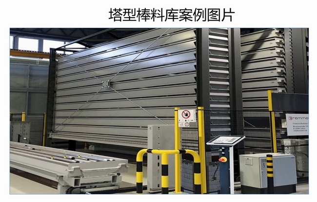 塔式棒料库分为单塔式棒料库和双塔式棒料库,由多层料架、自动上下料装置及控制系统组成。由主机控制,智能选取各层的原料,为生产过程提供优质和自动化的管理输送。塔式棒料库具备自动上料、下料双重功能。框架结构紧凑稳定,具备定位准确,运行快速灵活等特点。